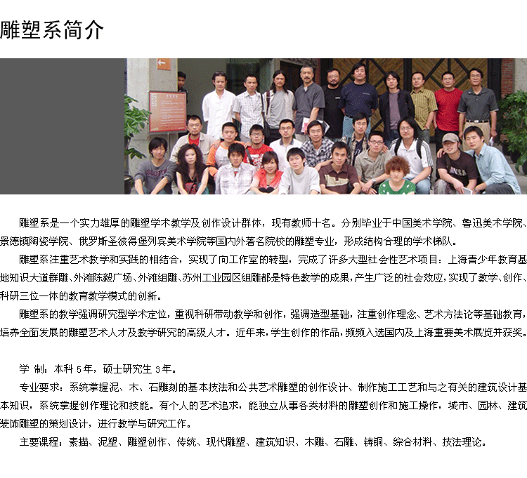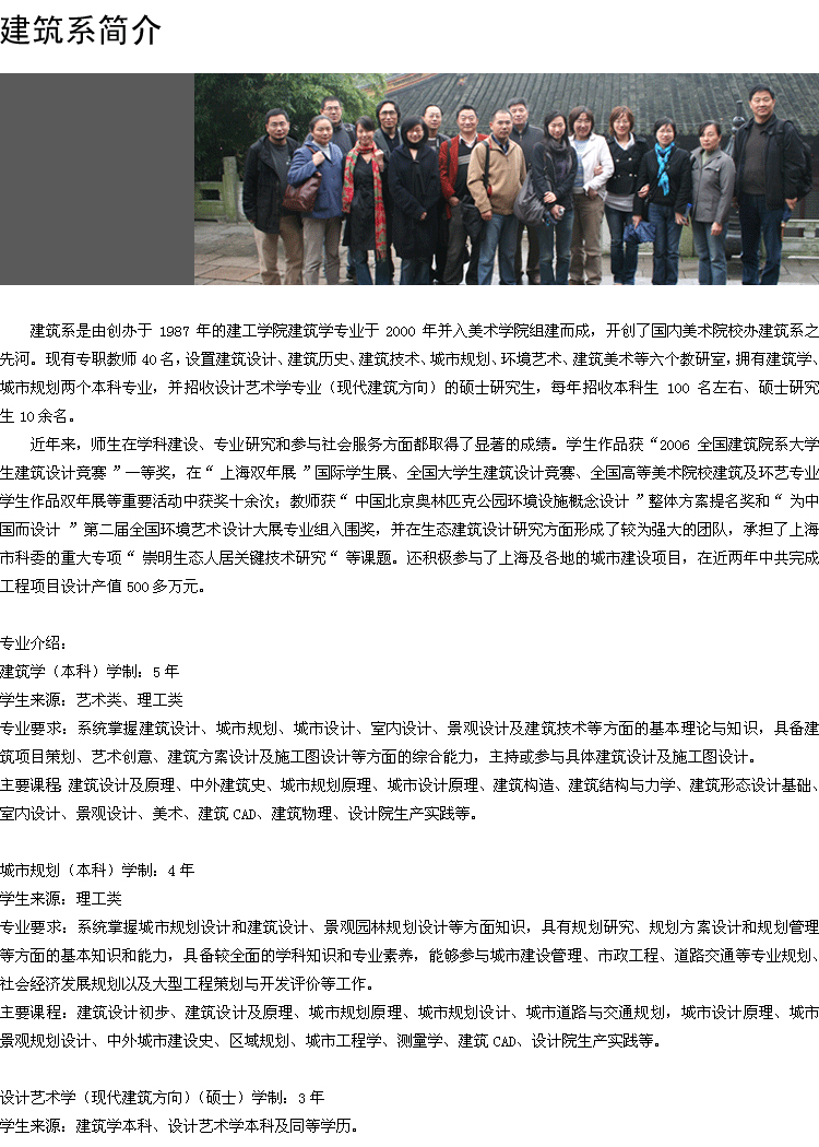 學(xué)院大力弘揚(yáng)海派的文化特色,在傳承傳統(tǒng)美術(shù)教育的基礎(chǔ)上,充分發(fā)揮上海大學(xué)綜合性大學(xué)的學(xué)科優(yōu)勢(shì),向理工類、經(jīng)濟(jì)管理類拓展,組建了一個(gè)以純藝術(shù)為核心的跨學(xué)科復(fù)合型學(xué)科群,建立了藝術(shù)管理、建筑學(xué)(理工、藝術(shù)),數(shù)碼藝術(shù)、材料藝術(shù)等學(xué)科。