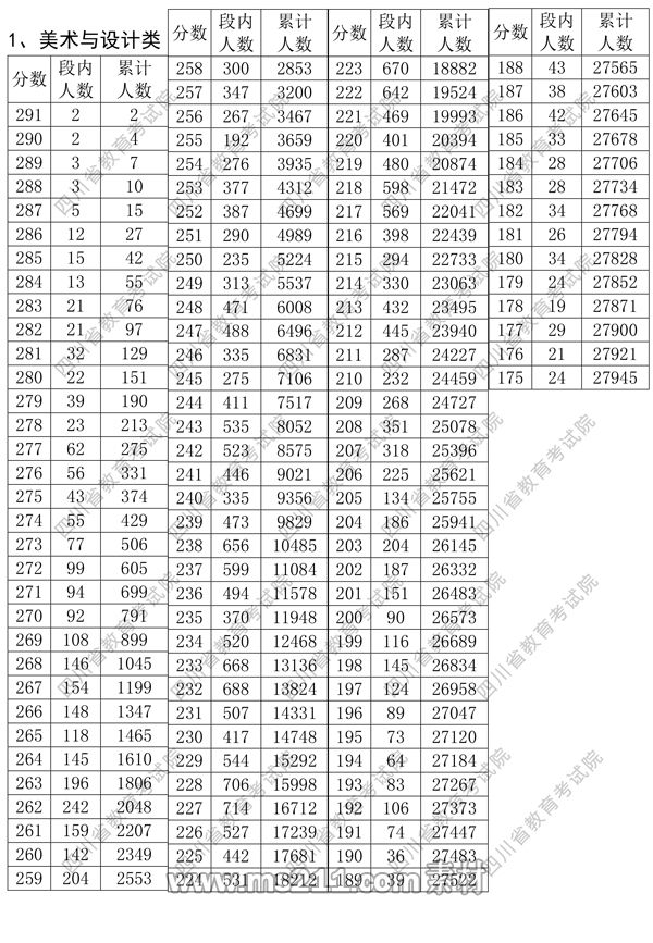 2018年四川美術(shù)聯(lián)考一分一段表
