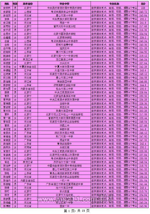 北京印刷學(xué)院2018年藝術(shù)類本科專業(yè)考試合格考生名單