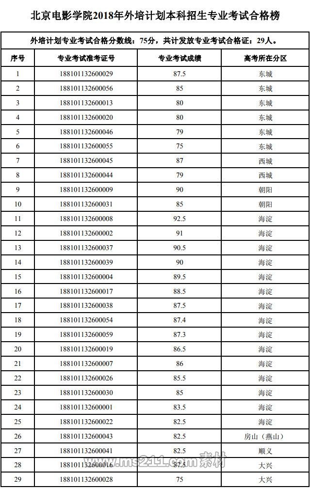 一、北京電影學(xué)院2018年外培計(jì)劃本科招生專(zhuān)業(yè)考試合格榜