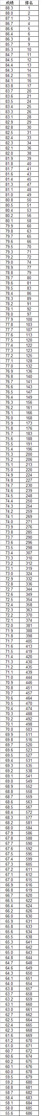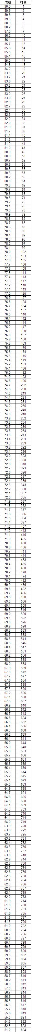 2019年體育舞蹈項(xiàng)目測試成績一分一檔表