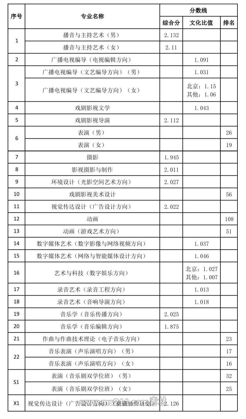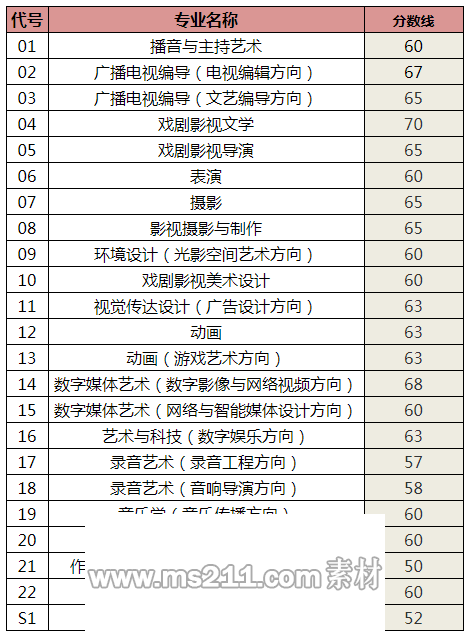 中傳2020年藝術(shù)類本科初試合格線