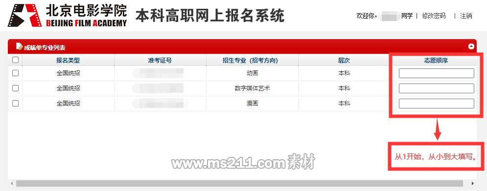 特別提示:此專業(yè)志愿順序是供考生同時可能被多專業(yè)(招考方向)錄取時參考,請考生按照自己的真實(shí)意愿填報,一經(jīng)填報不得修改。例如,排在第一專業(yè)志愿的專業(yè)(招考方向)不能被錄取時,將順延至第二、第三專業(yè)志愿順序。