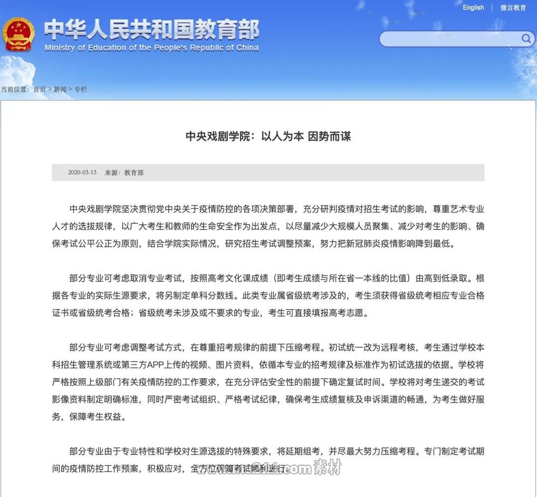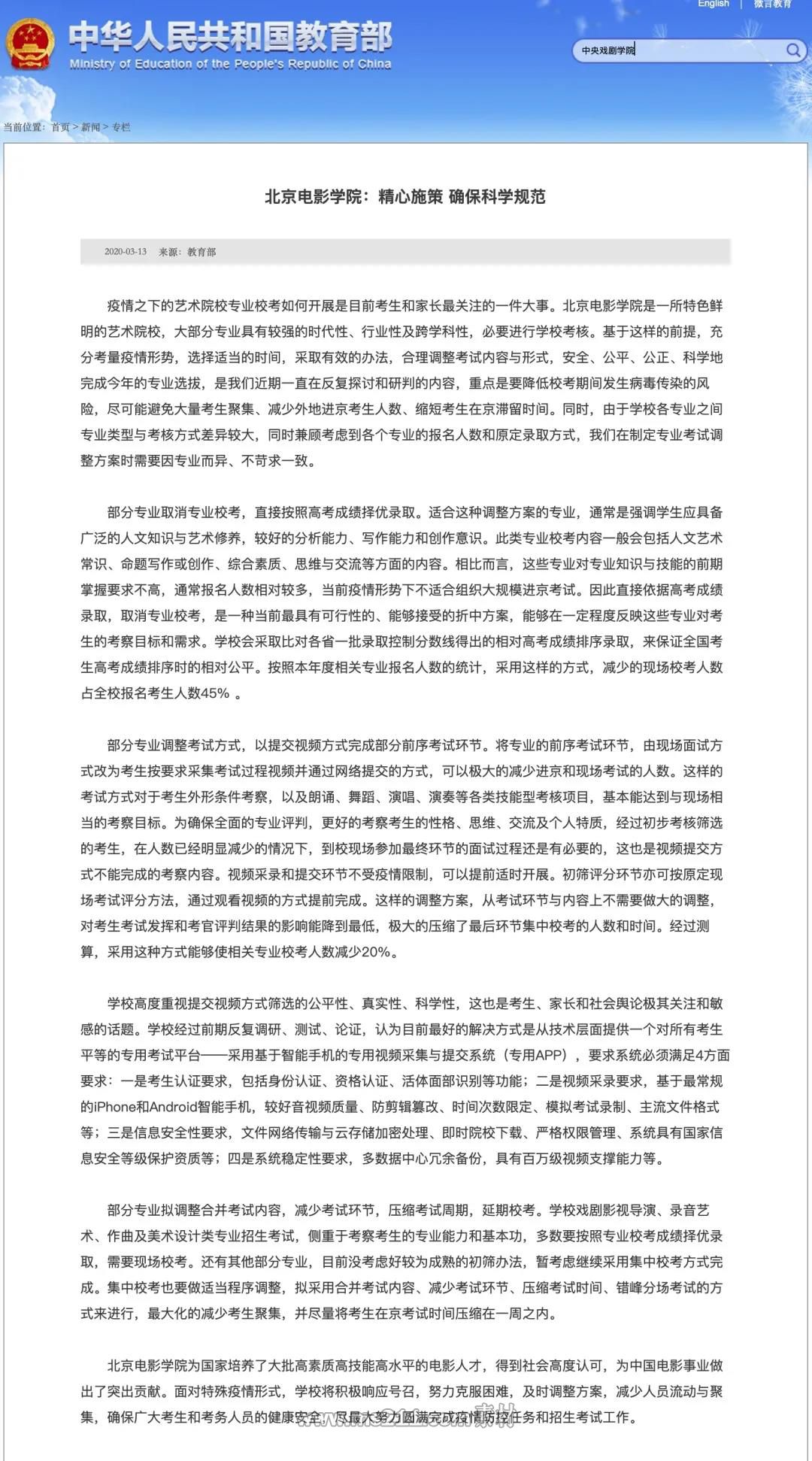 今日,教育部正式發(fā)文中央戲劇學(xué)院和北京電影學(xué)院兩所國內(nèi)頂尖藝術(shù)學(xué)院,大量專業(yè)將取消???,其中部分專業(yè)將按照高考分?jǐn)?shù)錄取!