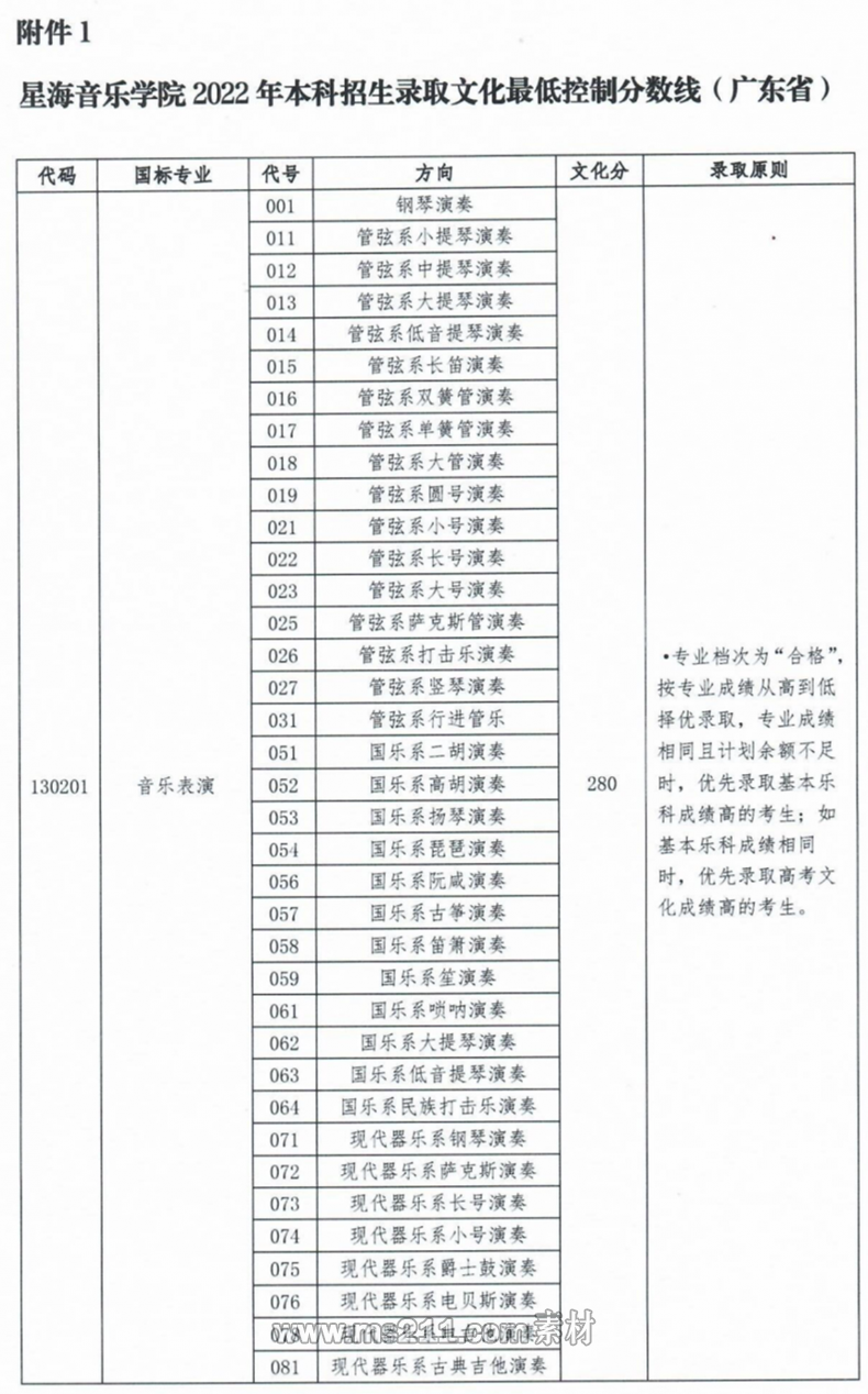 2022年星海音樂學院本科藝術錄取分數線