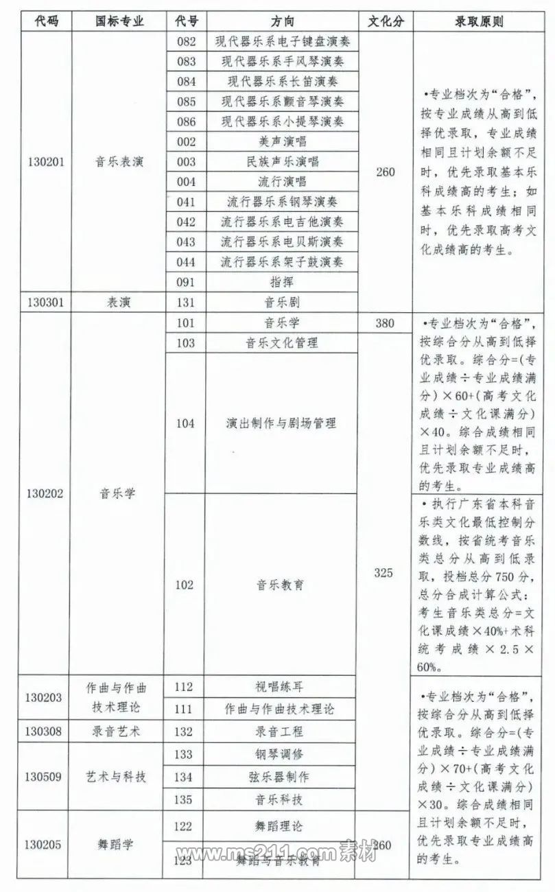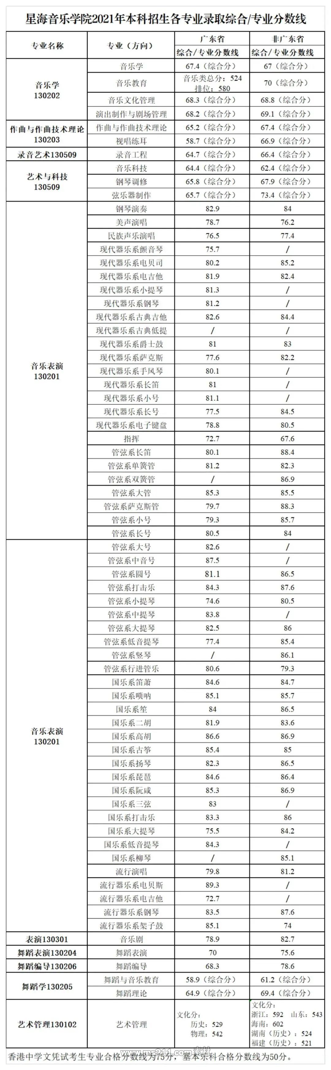2021年星海音樂學院本科藝術錄取分數線