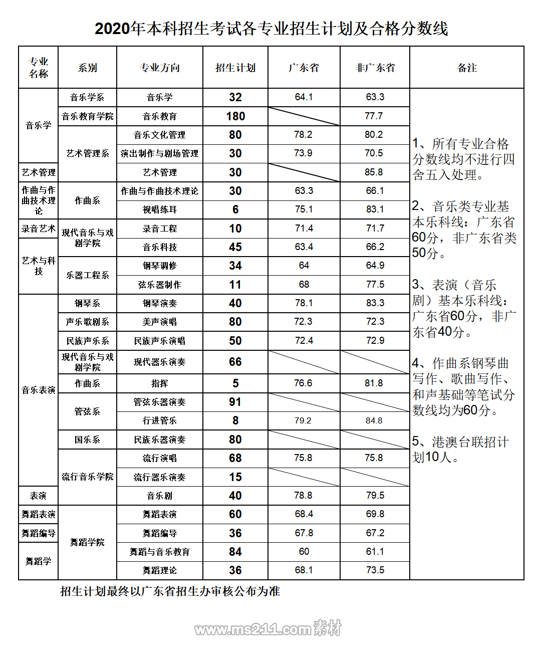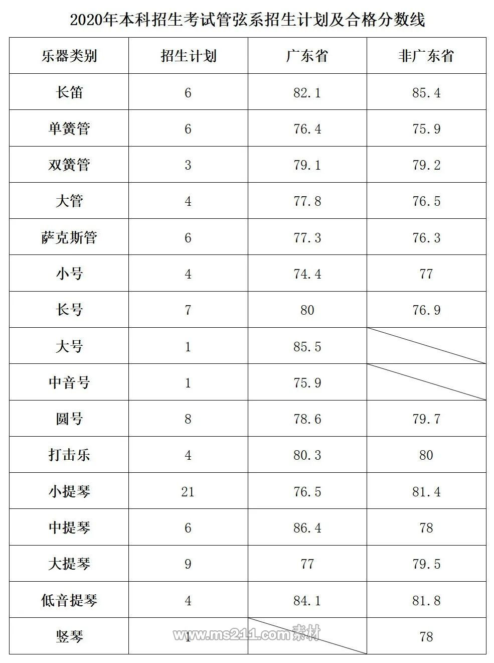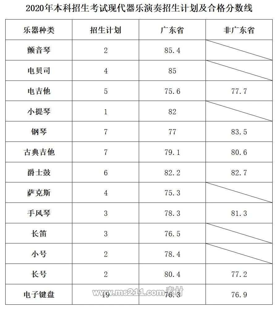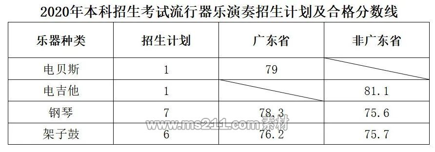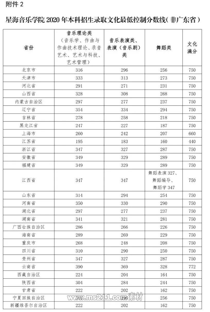 2020年星海音樂學院本科藝術錄取分數線