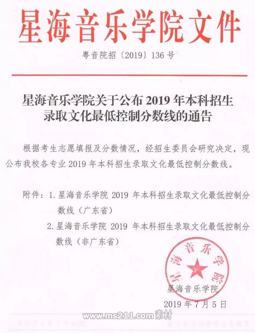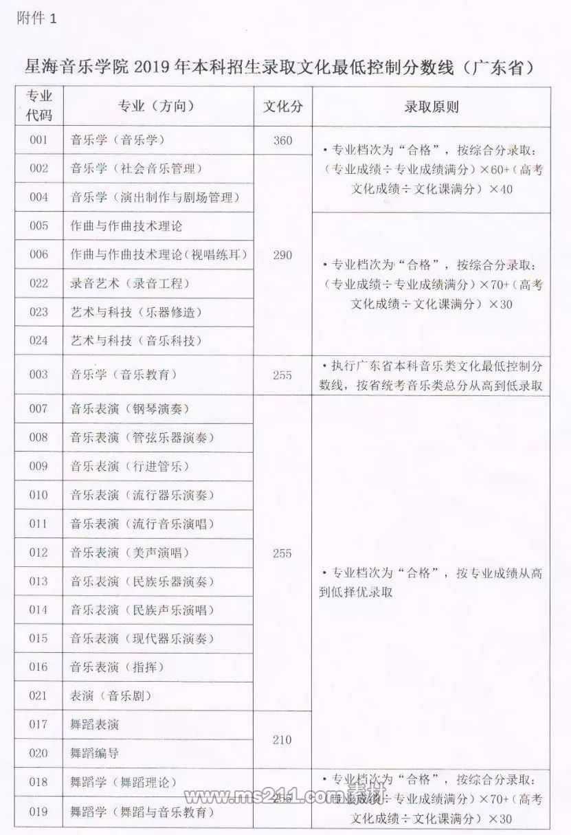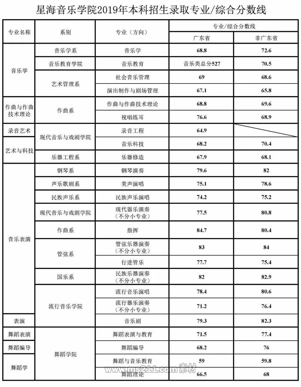 2019年星海音樂學院本科藝術錄取分數線