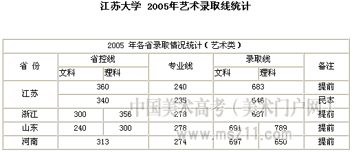 2005年江蘇大學(xué)美術(shù)高考錄取分數(shù)線