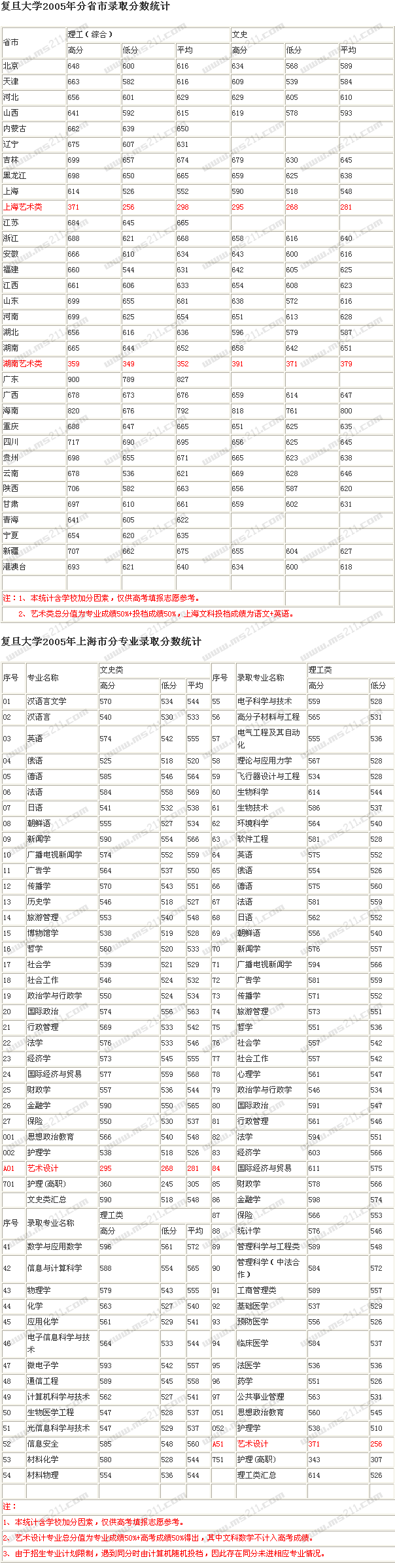 2005年復(fù)旦大學(xué)美術(shù)高考錄取分數(shù)線