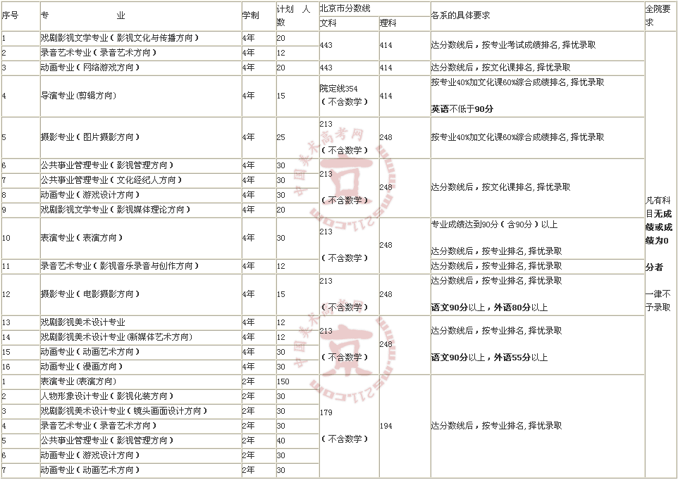 也可進(jìn)入 北京電影學(xué)院 招生大全(含歷年招生簡(jiǎn)章、錄取線、專業(yè)考題)