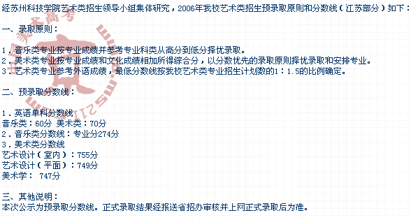 2006年蘇州科技學(xué)院美術(shù)高考錄取分?jǐn)?shù)線