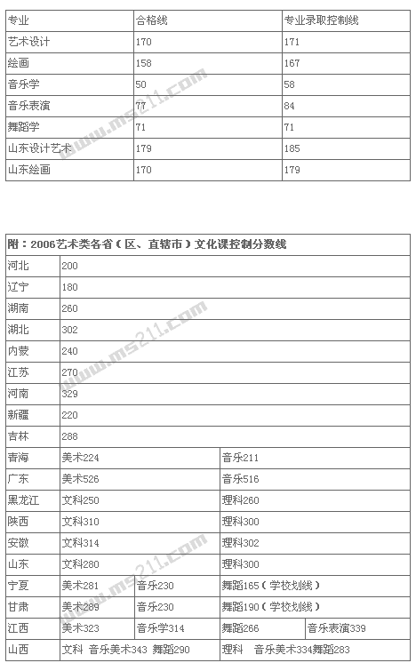 2006年北方民族大學(xué)(原西北第二民族學(xué)院)美術(shù)高考錄取分?jǐn)?shù)線