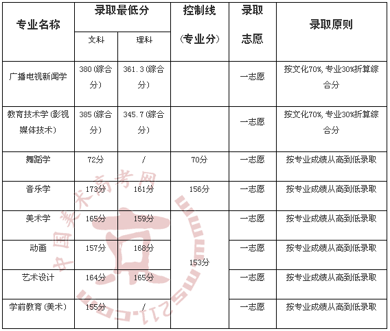 2007年重慶文理學院美術高考錄取分數(shù)線