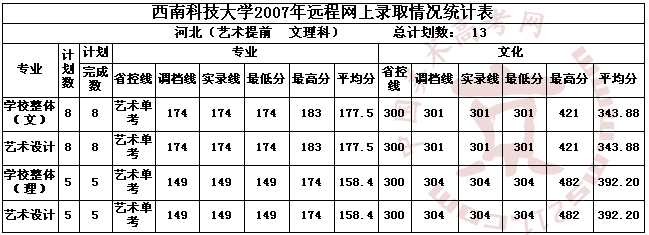2007年西南科技大學(xué)美術(shù)高考錄取分?jǐn)?shù)線