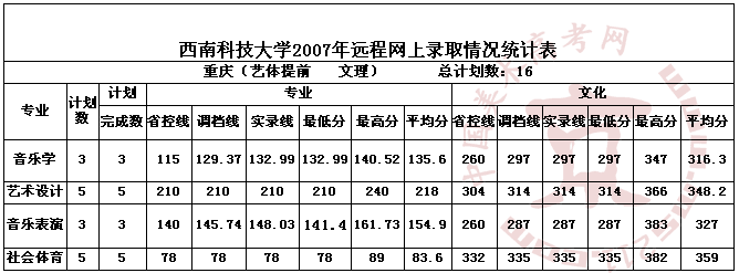 2007年西南科技大學(xué)美術(shù)高考錄取分?jǐn)?shù)線(xiàn)
