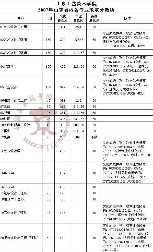 2007年山東工藝美術(shù)學(xué)院美術(shù)高考錄取分?jǐn)?shù)線