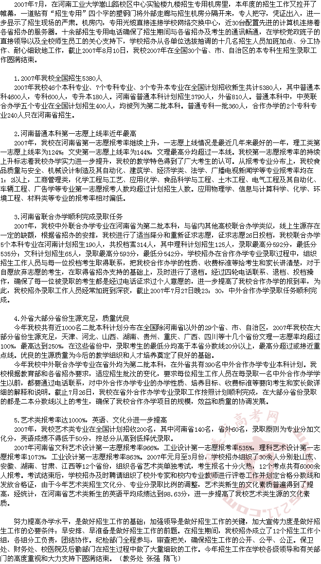 也可進入 河南工業(yè)大學 招生大全(含歷年招生簡章、錄取線、專業(yè)考題)