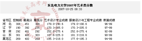 2007年東北電力大學(xué)美術(shù)高考錄取分?jǐn)?shù)線