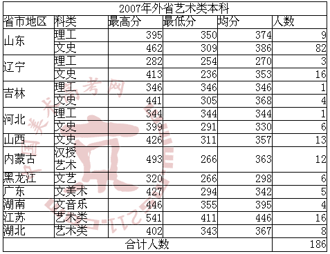 2007年北京城市學(xué)院美術(shù)高考錄取分?jǐn)?shù)線