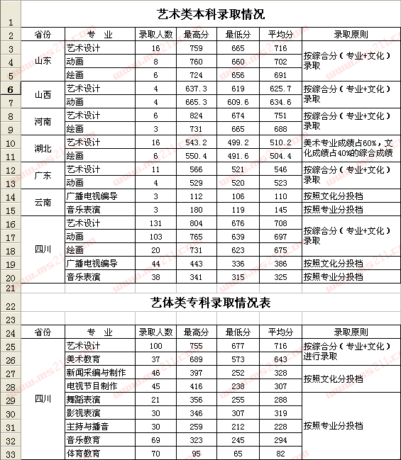 2007年成都學(xué)院美術(shù)高考錄取分數(shù)線