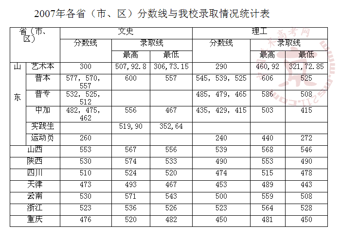 2007年青島農(nóng)業(yè)大學(xué)美術(shù)高考錄取分?jǐn)?shù)線