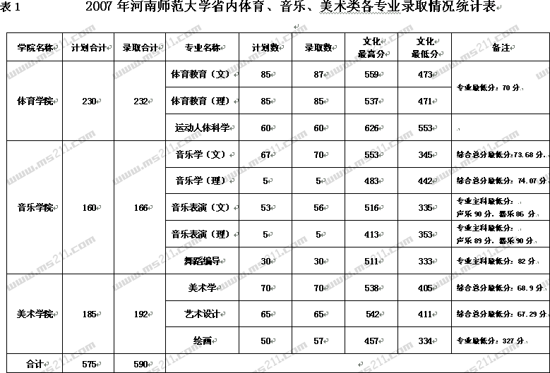 2007年河南師范大學(xué)美術(shù)高考錄取分?jǐn)?shù)線