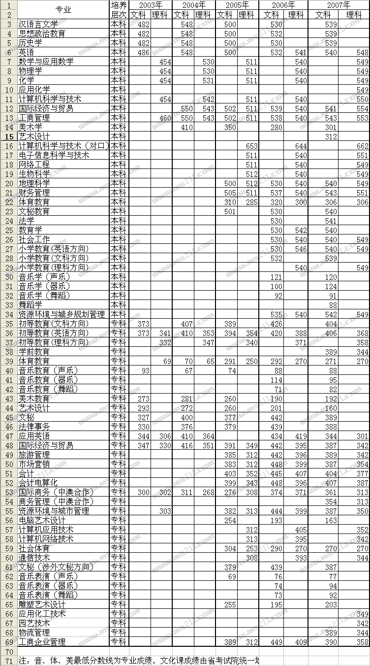 2007年邢臺學(xué)院美術(shù)高考錄取分?jǐn)?shù)線