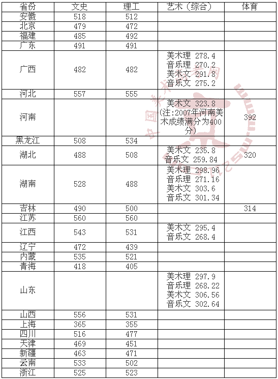 2007年孝感學(xué)院美術(shù)高考錄取分數(shù)線