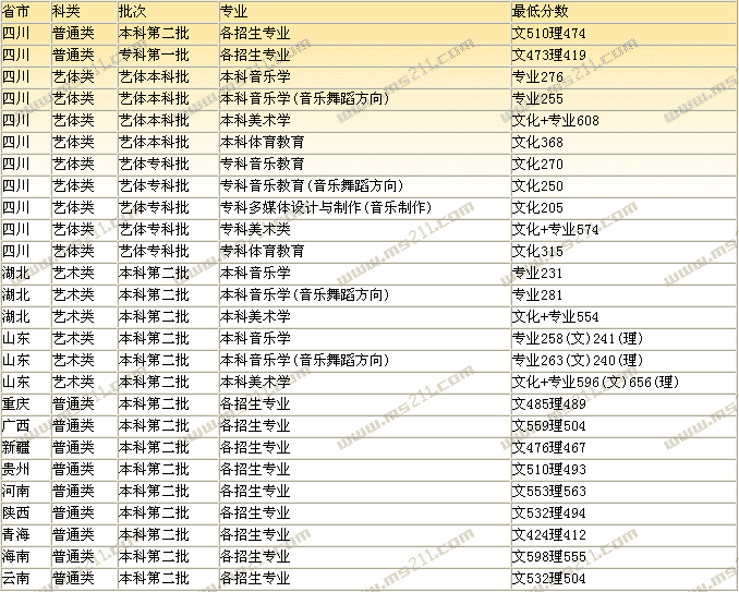 2007年四川文理學(xué)院美術(shù)高考錄取分?jǐn)?shù)線