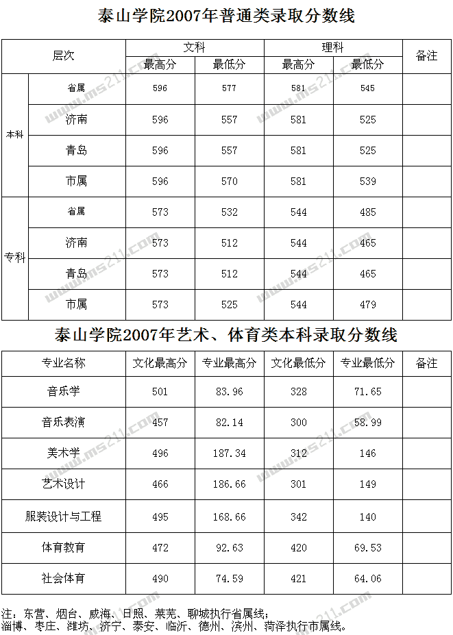 2007年泰山學(xué)院美術(shù)高考錄取分?jǐn)?shù)線