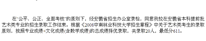 2008年中南林業(yè)科技大學(xué)美術(shù)高考錄取分?jǐn)?shù)線