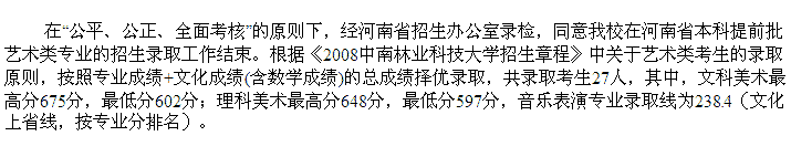 [圖文]2008年中南林業(yè)科技大學(xué)河南省本科提前批藝術(shù)類專業(yè)錄取