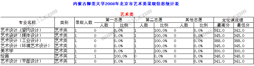 [圖文]2008年內(nèi)蒙古師范大學(xué)北京市藝術(shù)類錄取信息統(tǒng)計(jì)表