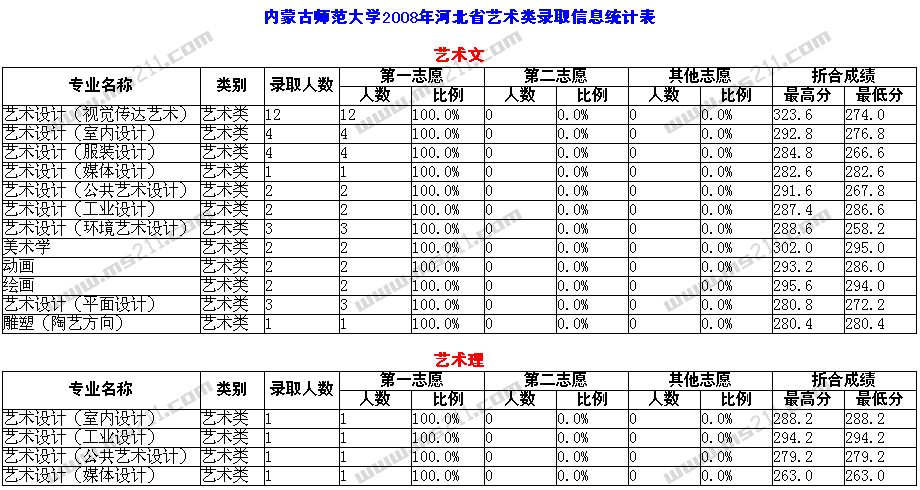 2008年內(nèi)蒙古師范大學(xué)美術(shù)高考錄取分?jǐn)?shù)線
