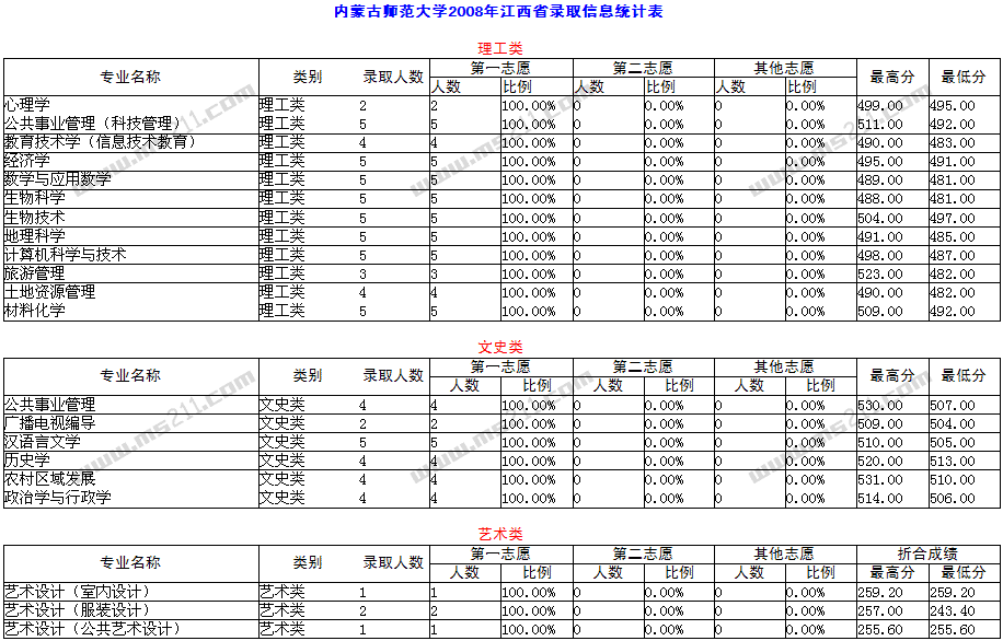 [圖文]2008年內(nèi)蒙古師范大學(xué)江西省藝術(shù)類錄取信息統(tǒng)計(jì)表