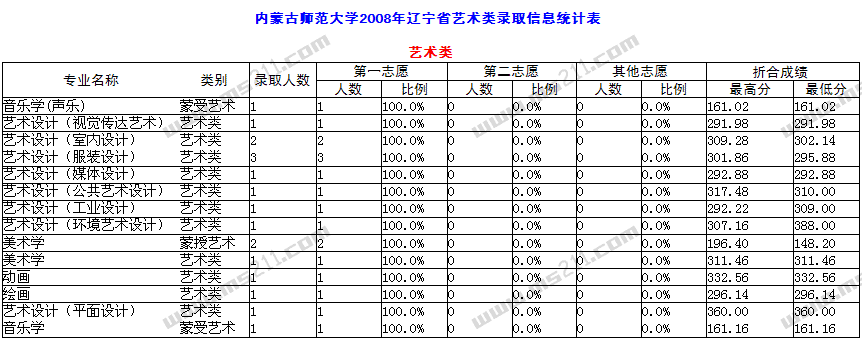 2008年內(nèi)蒙古師范大學(xué)美術(shù)高考錄取分?jǐn)?shù)線
