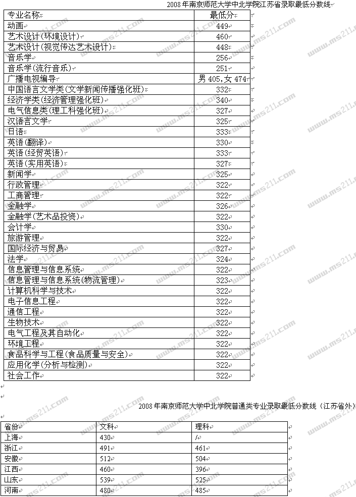 2008年南京師范大學(xué)中北學(xué)院美術(shù)高考錄取分?jǐn)?shù)線
