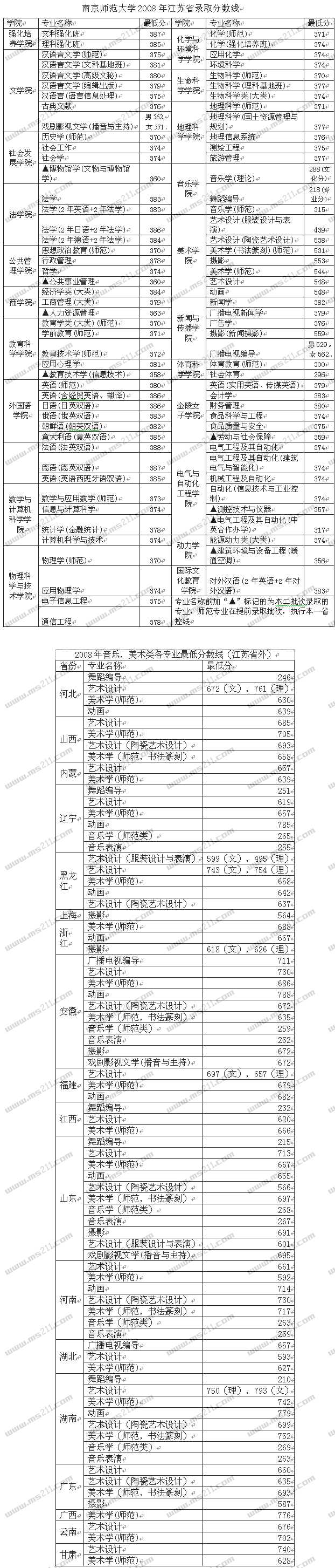 2008年南京師范大學(xué)美術(shù)高考錄取分?jǐn)?shù)線