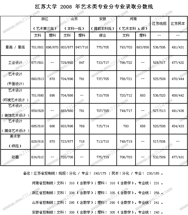 2008年江蘇大學美術(shù)高考錄取分數(shù)線