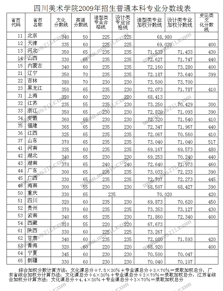 2009年四川美術(shù)學(xué)院美術(shù)高考錄取分?jǐn)?shù)線