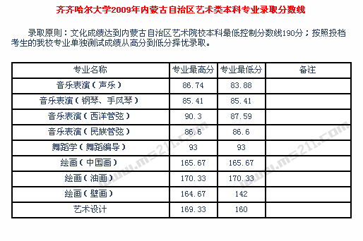 2009年齊齊哈爾大學(xué)美術(shù)高考錄取分?jǐn)?shù)線(xiàn)