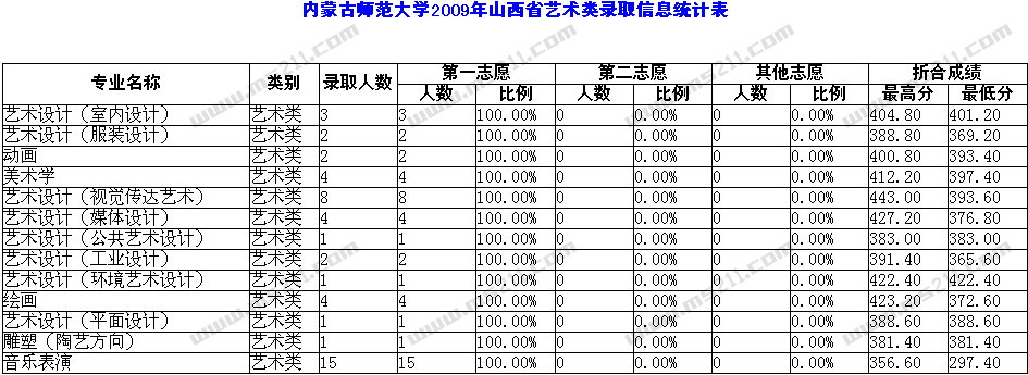 2009年內(nèi)蒙古師范大學山西省藝術(shù)類錄取線