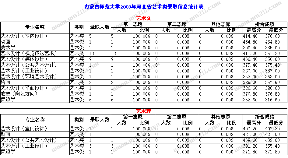 2009年內(nèi)蒙古師范大學(xué)美術(shù)高考錄取分?jǐn)?shù)線