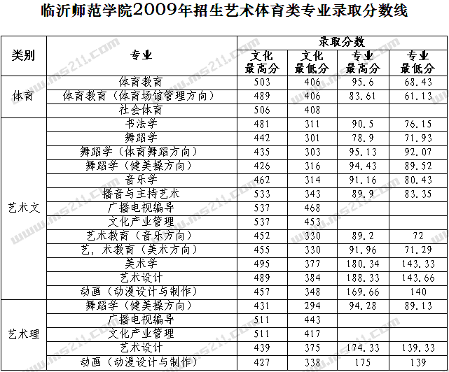2009年臨沂師范學(xué)院美術(shù)高考錄取分?jǐn)?shù)線