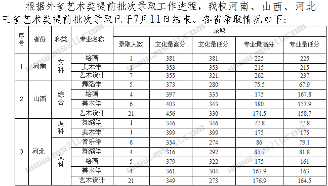 2009年九江學院河南、山西、河北藝術類提前批次錄取線