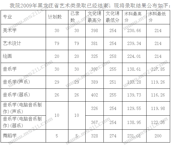 2009年牡丹江師范學(xué)院美術(shù)高考錄取分?jǐn)?shù)線