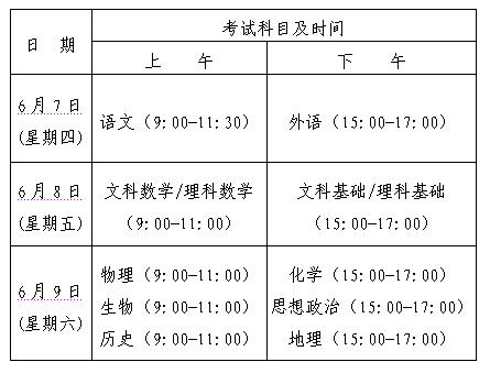 一、全國(guó)統(tǒng)一考試各科考試時(shí)間安排: