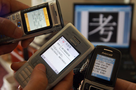 許多學(xué)生表示,一些專業(yè)考試的“槍手”在接到學(xué)生發(fā)來的試題后,直接將答案通過手機(jī)、網(wǎng)通電話或小靈通發(fā)給考場(chǎng)內(nèi)的考生?荚嚱Y(jié)束以后,“槍手”根據(jù)答題正確率要求考生付給其每套答題費(fèi)用500~2萬元不等的“辛苦費(fèi)”。不過,一些考生被分在1~2樓考試,受屏蔽器的干擾,無法在考場(chǎng)作弊;而被分到3樓以上的學(xué)生,幾乎都接到了考場(chǎng)外“槍手”發(fā)來的考試答案。