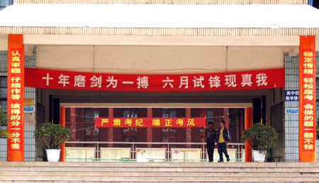中學(xué)內(nèi)懸掛的高考標(biāo)語